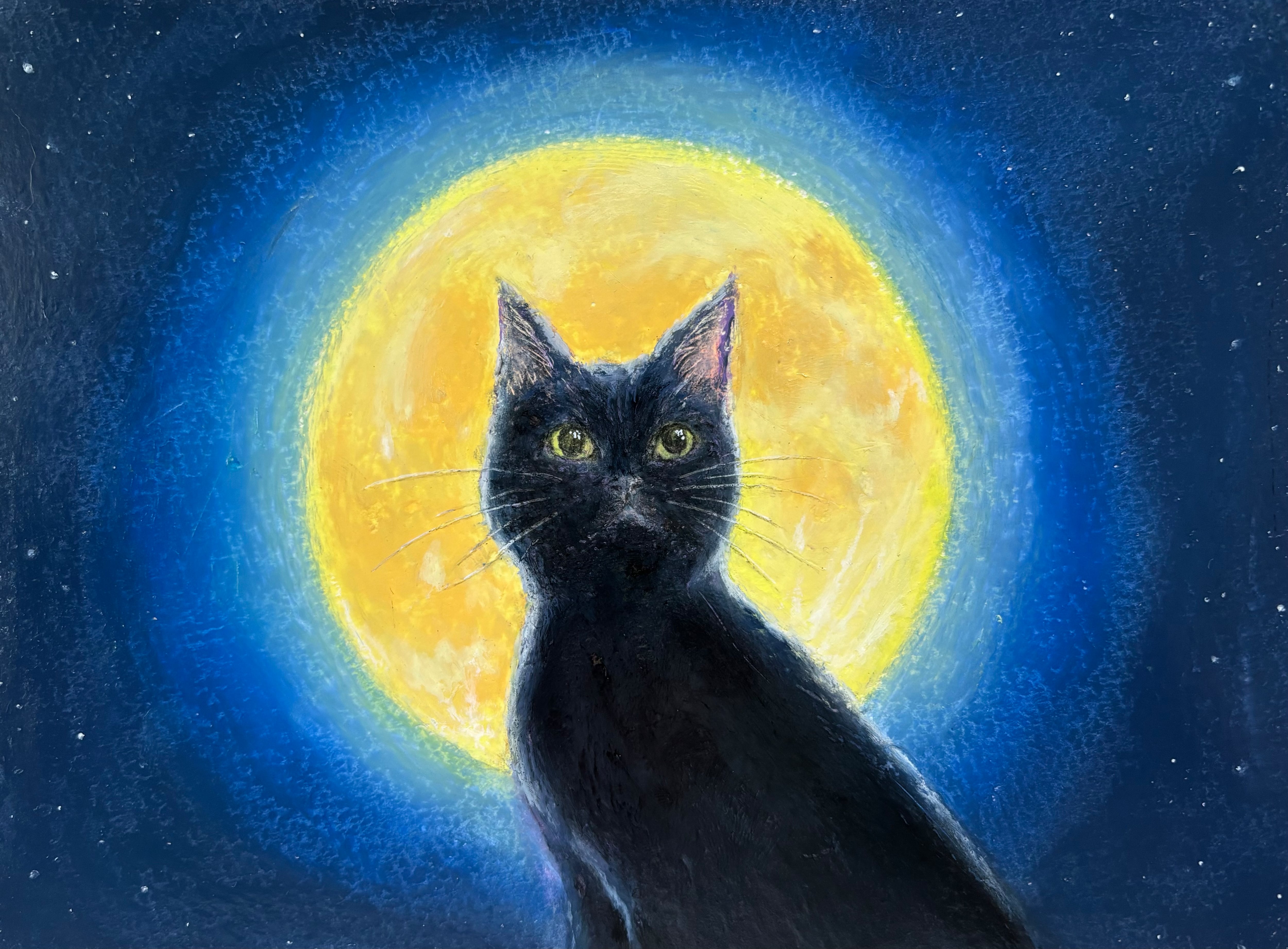 煌々と照る月を背にする黒猫